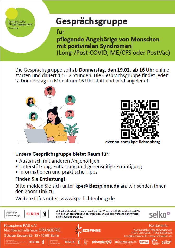 Gesprächsgruppe für pflegende Angehörige von Menschen mit postviralen Syndromen (Long-/Post-COVID, ME/CFS oder PostVac)